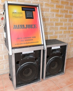 The "MiniJuke" is custom designed by us using the latest technology. The "MiniJuke" was designed to be transported in a car. It's light, compact, can be setup in minutes and is very simple to operate. The MiniJuke can sit on a table or on top of one of the speakers (see picture). The "MiniJuke" comes with a fixed list of 4500+ classic party songs including the latest Top 40 updated each month. FREE Blue Tooth is included but we also have an option with USB/aux input and CD player. This allows you to connect your iPod/iPhone/USB stick/mp3 player or play your own CD's. Please ask for this option at time of booking.